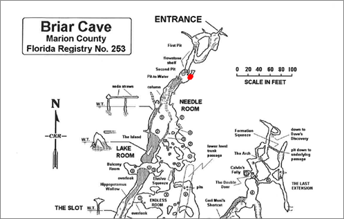 Briar cave is a beautiful formation rich cave located in north central Florida. It has significant air passage with many swimming tunnels. The cave is entirely within the fossil rich Ocala Formation and contains many iron rich mud deposits known to stain clothes and skin. It was discovered and extensively explored and mapped in the 1960s then subsequently closed by the property owners in 1972. The Florida Speleological Society (FSS) reopened, gated, and took over management in 1989. There have been previous studies at Briar cave to assess the carbon dioxide (CO2) influence on limestone dissolution, but extensive air flow and quality studies have not been conducted.