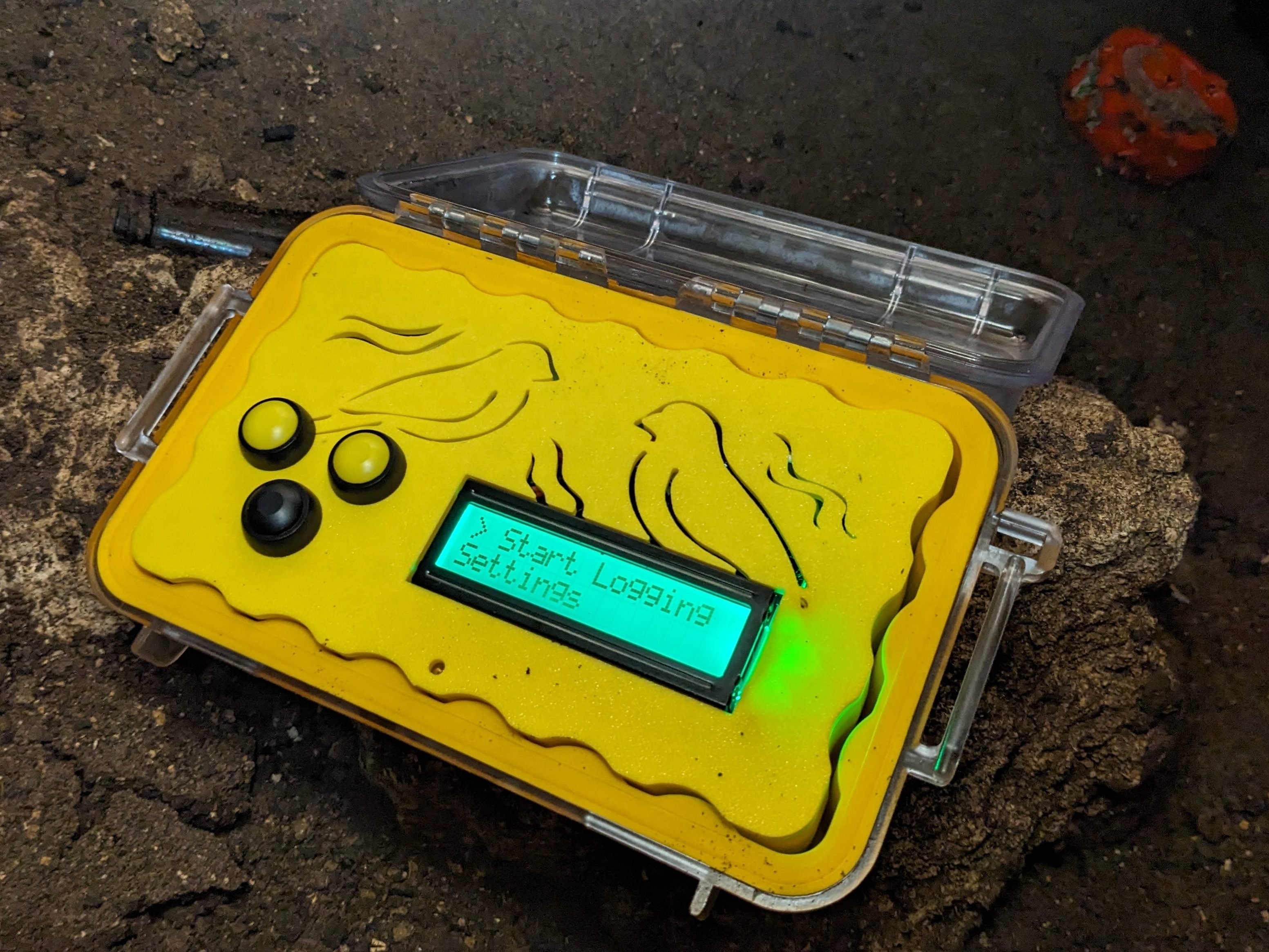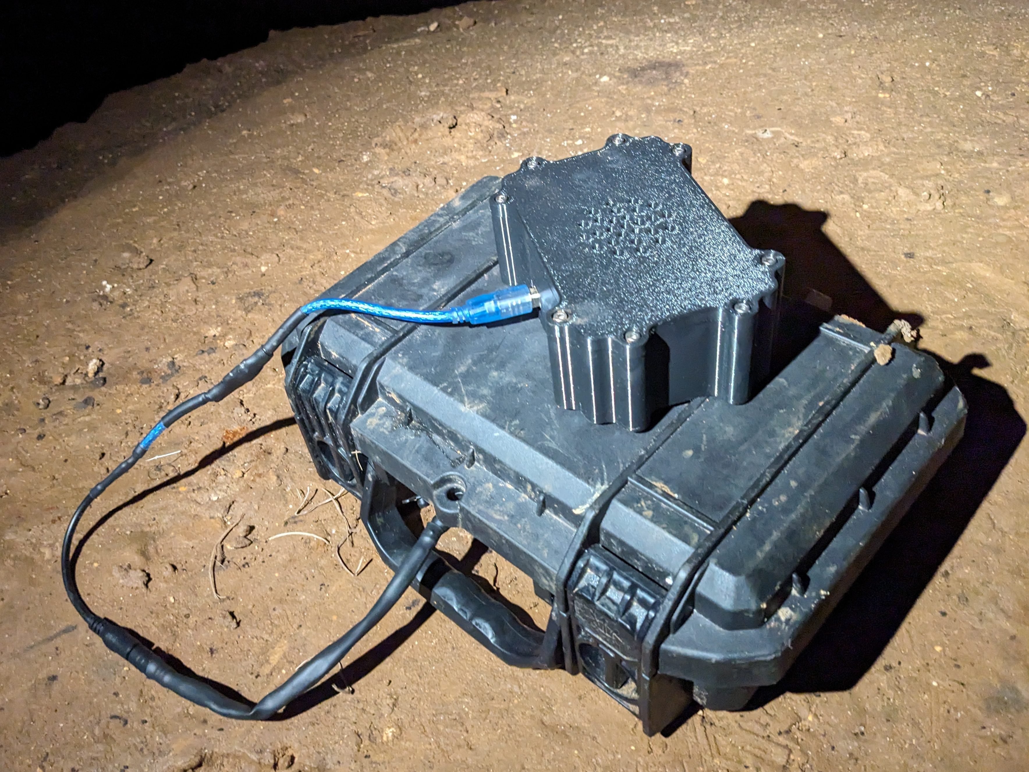 The long-term logger was deployed after the entrance squeeze in November 2025 and in January 2026. A case was designed to house the logger electronics and battery pack to protect from mice, bugs, and condensation. As with most caves, condensation was a big concern in Briar as it can be detrimental to electronics.